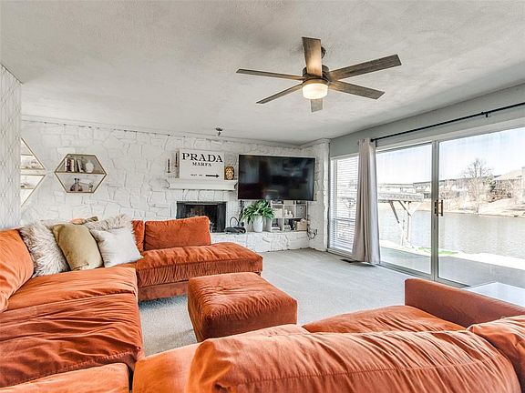 Ski Island home on the water! Nestled at the end of a quiet cul-de-sac, this 1970s contemporary lakeside home offers the best of both worlds—peaceful waterfront living right in the middle of the city. With breathtaking water views and direct access to serene coves, it's an ideal spot for kayaking, fishing, water skiing, or simply enjoying nature. Large living area overlooking the lake with tons of mid-century features abound. Not to mention, your own covered boat lift to store that boat year round. Kitchen has all white cabinetry, wood countertops, subway style backsplash and tons of windows for that lake view. Downstairs bedroom adds flexibility as it can serve as a bonus room, office or the fourth bedroom. Primary bedroom is upstairs with full en suite bath with dual sinks, standing shower and walk-in closet, not to mention, also offers views of the lake. Outside, discover charming nooks perfect for reading or relaxing by the water. Come take this opportunity to be part of a truly iconic OKC neighborhood where water skiing and lake life is just outside your back door!