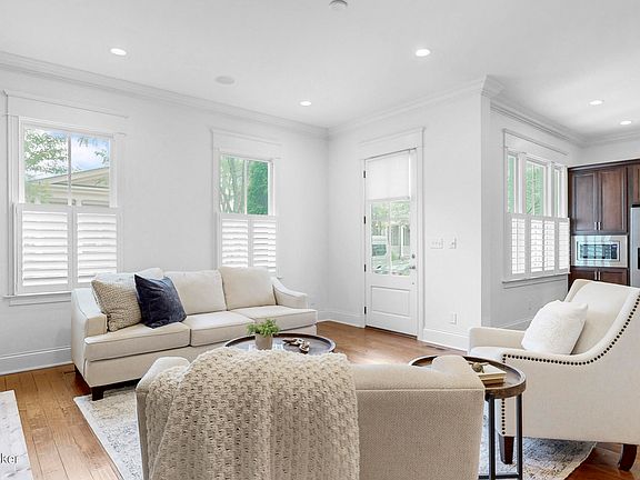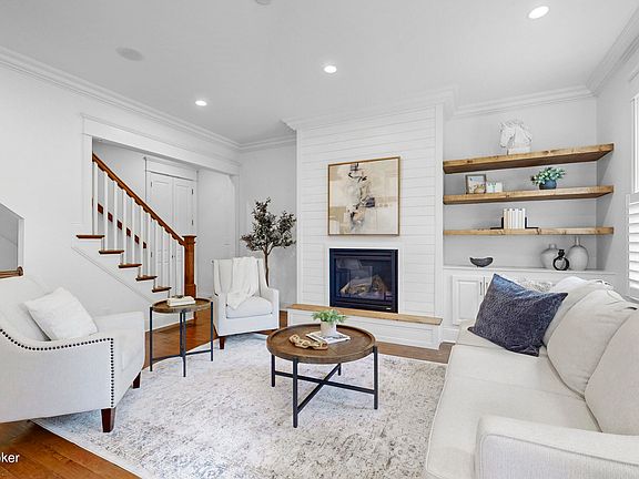 Welcome to this freshly updated and well maintained gem in the desirable South Village of Norton Commons! Just a short walk to shops, restaurants, and businesses. This coastal inspired home features an inviting covered front porch and second-floor balcony. The innovative floor plan offers a bedroom and full bath on each level, providing ample space and privacy. The light-filled 1st floor offers 10' ceilings (which elevates the upgraded trim package), a 1st floor bedroom with an ensuite full bath and walk-in closet, surround sound, a gas fireplace, custom shelving, plantation shutters, a large kitchen island, a spacious eating area, and a powder room. The private covered back patio with a porch swing is ideal for cookouts or watching your favorite show while staying out of the elements and leads to a 2-car garage with additional built-in storage. Upstairs, you'll find a bright office/ sitting room with great views and custom built-in shelving. The spacious primary suite features a luxurious bathroom w/ double vanity and upgraded steam shower, HUGE walk-in closet, and private balcony. The fully finished basement is perfect for entertaining, complete with a built-in bar, family room/ media area, and a private bedroom with an attached full bath. With easy access to Norton Commons' best restaurants and shopping, this home combines elegance, comfort, and modern convenience.