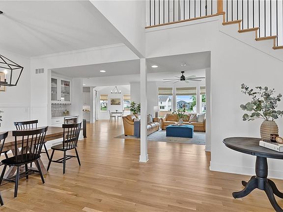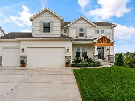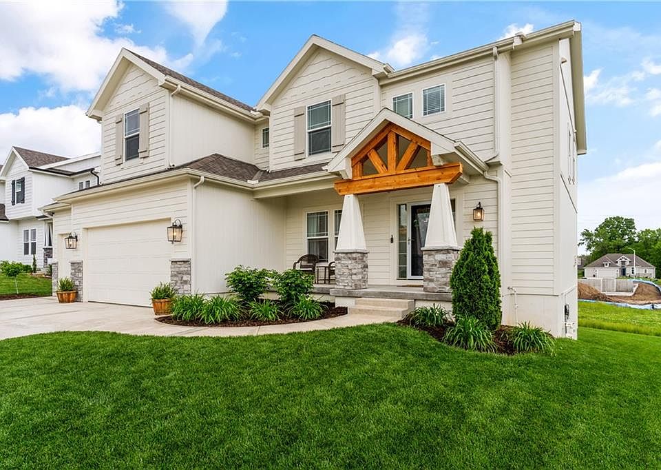 Why buy a spec when this custom built, 2 years young, stunning 2 story from Aspen is ready to go? Estate lot w/ green-space supporting Staley High School in KC's premier Cadence Subdivision. Natural light floods the main floor w/ white oak floors framing the chefs, ultra modern kitchen and spacious great room adorned with $12K of designer window coverings. Custom means larger walk-in pantries, furniture grade cabinets, beverage stations, top of the line flooring and finishes not available in the area. Kitchen specifics include, quartz, an eye popping island, high end gas stove and appliances, slide out microwave, hand glazed tiled backsplash, under-cabinet task/mood lighting, hammered gold-toned pendants and completely built out dining areas (yes breakfast and formal) creating the Architectural Digest look. The primary suite offers a spa-like retreat with a spacious zero-entry shower, a soaker tub, dual vanities, a generous walk-in closet, and a convenient 2nd floor laundry room. Additionally, the walk-out lower level with 9' ceilings is ready to be finished. Out-door living is a ten with a front yard covered "coffee" porch and back-yard covered elevated deck for intimate outdoor dining or lounging. Finally add Pella doors & windows (not builder grade), pre-wired for wireless router and much more. Award winning neighborhood amenities including the swimming pool and walking trails and close by schools. True luxury awaits.