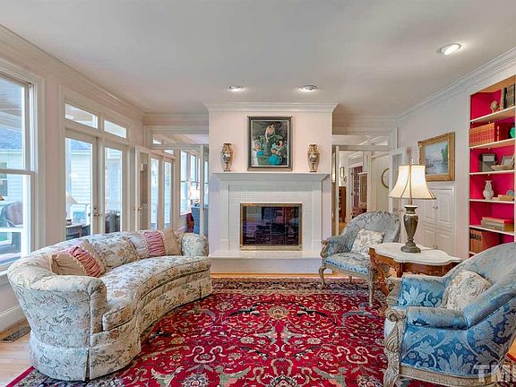 Perfect entertaining home! Enjoy evenings on your porch swing or rocking chairs on this wrap around front porch or screened porch w/ceiling fans & beadboard. Estate home located on 3.56 acres in N Ral! Study w/built-ins & formal din opens to the porch. Formal liv & family rm w/double sided fireplace, built-ins, french doors w/transoms & a wall of windows. Kit w/brkfst bar & tile backsplash. 1st flr guest suite w/bath. Laundry rm w/sink. Master suite w/soaking tub. Reading nook w/built-ins. Circle drive.