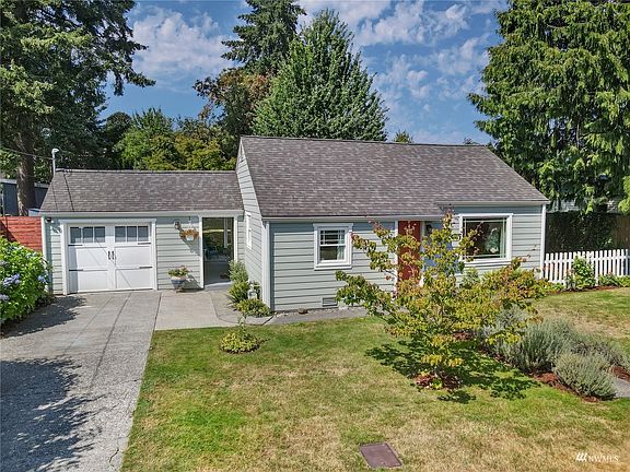 Sweet Shorewood Cottage…you’ll fall in love with its garden setting, light-filled layout, warm wood floors, & stylish updates. Cooking is a delight in the cheerful kitchen with stainless-steel appliances & breakfast nook. Two lovely bedrooms await, with a remodeled full bath. Discover bonus space in the detached garage (with finished insulated walls)--could be your workout room, play area, or WFH space? Fantastic, fenced backyard features a patio, garden beds, & large lawn. Enjoy peace of mind with upgraded windows, roof, siding & ductless heat pump for heating & cooling. A short stroll away from shopping, dining, bus route & the library. Large lot holds the possibility of a DADU with alley access for separate entrance (buyer to verify).