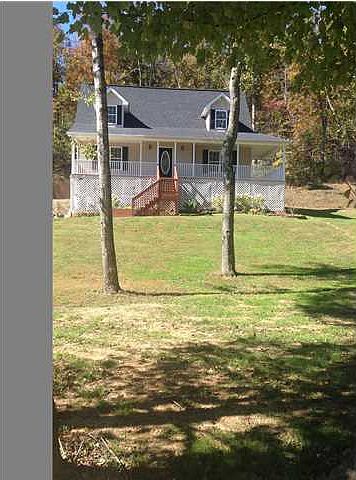 Beautiful Cape Cod style 3 bedroom 2 1/2 bathroom home on one wooded acre. No traditional subdivision here, lots of privacy with endless possibilities. Have adventures hiking in your back yard, or fun 4 wheeling and exploring the woods. 12 undeveloped acres behind the house for hours of fun. Your own private pond in the front yard, stock with fish, and have fun catching dinner. Lots of new in this home, starting with the freshly poured concrete driveway and beautiful landscaping with stone retaining wall. Freshly stained front steps and front porch, welcome you to the very large covered rocking chair front porch. Perfect for relaxing with a hot beverage on a gorgeous fall morning, watching the sun come up. Open the stain glass inlayed front door and notice the brand new gorgeous polished w ood staircase. On this level is the 1/2 bath, for your guests, complete with new hand carved wood vanity with new stylish faucet and tile floor. Enter the large living room with new crown molding and new ceiling fan. The focal point is a gas log fireplace, for staying cozy on chilly evenings. Gleaming wood laminate flooring for ease of maintenance and durability. There is fresh paint throughout this home. The living room is open to the dining room and kitchen, for ease of entertaining. The big dining room has crown molding a new chandelier and is big enough for your largest family gatherings. The kitchen has polished hard wood floors, beautiful wood cabinets with new crown molding, hardware and a matching faucet. A new mosaic tile backsplash that matches the gleaming countertops is highlighted by lots of task lighting. Lots of work space and a new kitchen island is perfect for the gourmet cook. The back door is off the kitchen and leads out to the double deck, lots of room for grilling, entertaining and relaxing by the waterfall coming down the hillside, with family and friends. The master retreat is on the main level with a brand new ceiling fan. You are going to love the gigantic walk in closet with new closet organizers including drawers. Room for all your clothes and storage too. The luxurious master bathroom boasts a new jetted tub, glass and marble mosaic tile accents and a tile floor for a spa like feel. A great place to relax after a hard day. There are two bedrooms upstairs and each one is 250 square feet, huge! And each has a walk in closet with organizers and a window seat nestled in each dormer perfect for gazing out at the pond, extra storage a bonus. A huge shared bathroom with tile for these two bedrooms completes this level. The basement and garage run the full length of the house. Basement is large and heated/cooled, perfect for completing the space for an extra room or two, let your imagination be your guide. A new media room, rec room, office, extra bedroom, den, man cave or a combination. Or you can leave the space unfinished for lots of extra storage, or to park your truck with trailer and recreation vehicle or SeaDoo still attached, it's a long parking space. This is a wonderful home in a great area, less then a mile to the lake, great schools, a must see. Make your appointment today!