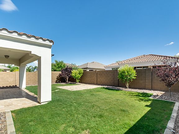 Stunning 3 bed, 2 bath home in highly sought after community, Eastmark! Your spacious living room basks in beautiful natural lighting provided by the 4-panel sliding glass door. Throughout the house, there is neutral toned tile that will compliment all of your furniture. Inside your kitchen, you will be set to entertain your friends and family, with granite countertops, a large island, wood cabinets, and stainless steel appliances. Your beautiful backyard has a large grassy area to play yard games in or sit back and relax under your covered patio. Schedule your showing today!