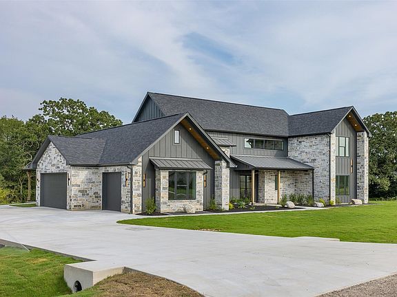 Turn onto this quiet Cook Crossing street and you’ll know—this is the one. Nearly 3,500 sq. ft. on 2.27 wooded acres with no city taxes, minutes from College Station. An expansive driveway, stamped concrete porches, and tongue-and-groove ceilings set the tone. Inside, a soaring 20-foot ceiling and floor-to-ceiling micro cement fireplace anchor the light-filled living space. The kitchen impresses with custom inset cabinetry, built-in full-size refrigerator and freezer, double workstation sinks, reverse osmosis system, and designer selections. Halo lighting, extensive exterior lighting, and elevated finishes showcase upgrades throughout. The primary suite features a spa-inspired wet room, while a flexible downstairs room and upstairs loft adapt to your needs. The oversized 3-car garage includes a mounted vacuum and built-in pressure washer. Outside, enjoy a sprawling porch, outdoor kitchen, and private wooded views.