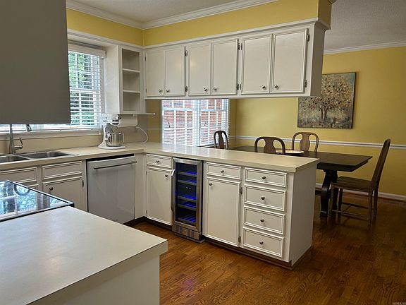 Welcome home to Pleasant Valley! Convenient and established neighborhood with ease of access to anything you'd want in Little Rock. Spacious home with 5 bedrooms (4 up and 1 down) and 3 full bathrooms (2 up and 1 down). Kitchen has ample storage, breakfast bar, room for a breakfast table and sports a wine fridge. Downstairs provides a cozy living area with fireplace and large space for entertaining plus a separate dining room. Upstairs you will find 4 spacious bedrooms including the traditional primary bedroom suite plus a guest bath. Side-loading 2 car garage with workbench/storage and large, fenced backyard. Roof 2017, sprinkler system 2022, upstairs AC 2018, downstairs HVAC 2014.