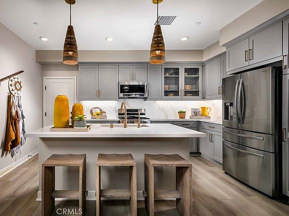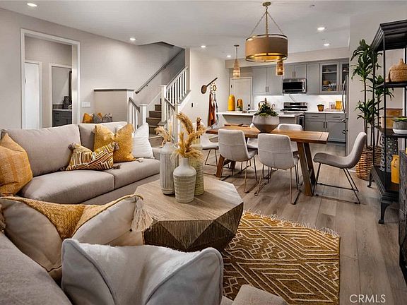 This new townhome community in tranquil Cypress truly has it all for those who want extraordinary Orange County living. This brand new neighborhood offers abundant amenities including a pool and spa, green belt, outdoor seating areas, and BBQ grills honor the Southern California lifestyle. This two-story home is a Residence Four, which offers 2,075 square feet of thoughtfully designed living space: 4 bedrooms, bonus room upstairs, and 3 bathrooms. The first floor features a bedroom with walk-in closet and full bath along with great room opening up to a dining space and kitchen, which includes stainless steel appliances including refrigerator, large island, and buyer selection of quartz counters. Buyers will love the opportunity to select flooring along with additional option upgrades. The primary bedroom offers walk-in closet, and an ensuite bathroom with dual sinks, quartz counters, and walk in shower. Throughout the home enjoy white shaker cabinetry, ample storage, upstairs laundry with side by side hook-ups, flat screen prewire at select locations, and smart home technology such as ring doorbell, smart thermostat, and Brilliant smart switches all included. Buyers will also appreciate the 2-car side by side garage, and quiet location within the community.