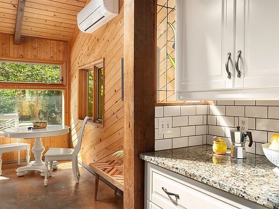 Quintessential Island retreat near town and ferries. Lovely 2 bed, 1 bath home on a quiet lane near town and ferries. Warm wood light-filled interiors, recently upgraded counters and cabinets, new tiled step-in shower, bedroom on the main floor, walk-in pantry, vaulted ceilings, skylights, open stair to second bedroom and loft office/family room. The darling wood stove supplements the new mini-split, which provides efficient heating AND cooling. The property is over 2.5 acres of clearing and woods with an enticing fire-pit overlooking the wooded ravine to the south; the perfect combination of clearing and forest with privacy and peace. Vashon town is minutes away, as are the ferries to Seattle and Kitsap.