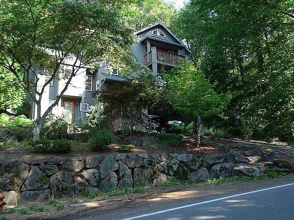 Beautiful custom built home with vaulted ceilings, lots of natural light, and quiet, gorgeous forest surroundings. Close to Lake Oswego and minutes from downtown. Extensive hardwood flooring. Central air and vacuum systems. Open kitchen and huge living room with fireplace. Great for entertaining or raising a family (good schools). Downstairs third bedroom suite with separate entrance. Sleeping loft above the 3rd floor. Wired alarm.