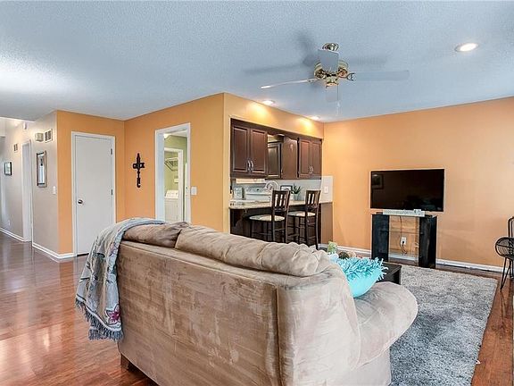 Updated 2 bedroom townhouse in perfect location. Each large bedroom has own full bath! Kitchen features granite countertops, pantry closet, updated flooring and freshly stained cabinets. All main flooring on the first level is updated. Open floor plan, HVAC is one year new. Cute fenced, private backyard with patio. Maintenance provided exterior, HOA includes lawn, snow removal and trash pick-up. Convenient to everything. Blue Valley Schools.