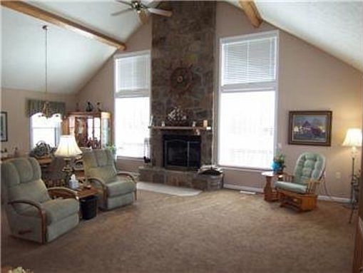Golf front home with acreage in Cumberland Cove.This home has been completely renewed inside and out! Conveniently located this home has an open floor plan with cathedral ceilings in the great room with a gas log stone fireplace and newer carpeting.The open kitchen has custom oak cabinetry with Corian counter tops. The master bedroom on main level with an updated master bathroom.Two spacious guest bedrooms on the upper level with a private bath.Newer appliances,roof, windows,heat and air,washer and dryer,whole house fan, carpeting,vinyl coated decking,outbuilding and more.Sun room overlooks 13th fairway of the golf course....Call me to see this immaculate home.