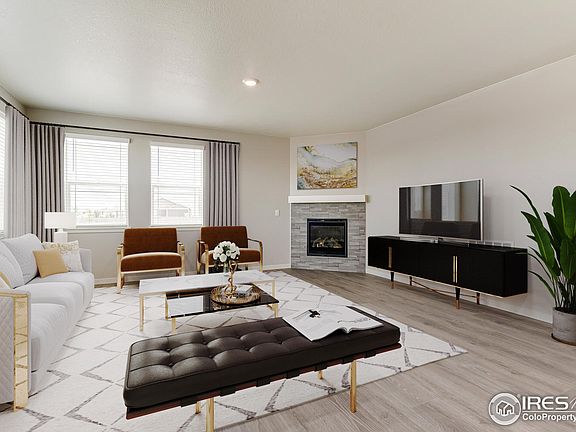 **Ready Now** Rear landscaping, refrigerator, washer, and dryer included. This 4-bedroom home features a loft, study, gas fireplace and a covered patio! Has access to the TPC Colorado (Tournament Players Club) clubhouse facilities, quartz counters throughout, blinds, Rinnai tankless water heater, Smart Home Tech and Deako smart lighting package, and is just steps from new Berthoud Rec Center. Special rates with use of preferred lender. ***Photos are representative and not of actual home***