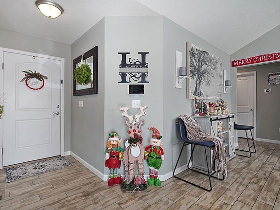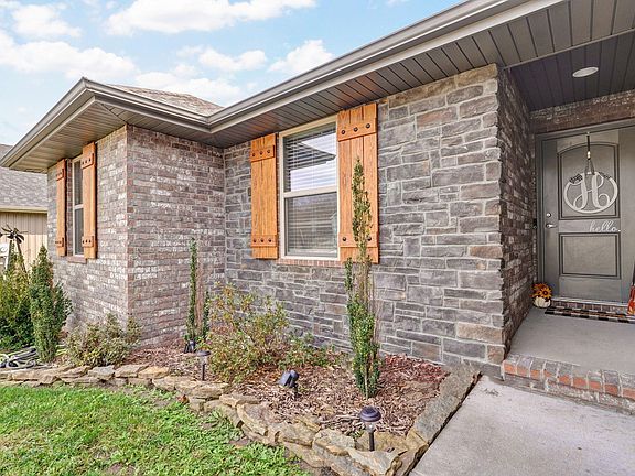 This home boasts a fantastic open floor plan complemented by wood-like tile flooring in key areas such as the main living spaces, bathrooms, and laundry room. The home has four bedrooms and two full baths, featuring a kitchen adorned with modern dark cabinets, granite countertops, black appliances, and a spacious walk-in pantry. The generously sized and private primary bedroom connects to an ensuite bath offering a double vanity, walk-in shower, and an ample walk-in closet. Meanwhile, on the opposite side of the home, three additional bedrooms and the second bath await. Adjacent to the garage entry, a built-in area with a bench and coat hooks adds convenience. The backyard is enclosed with a 6-foot privacy fence and features a fire pit area perfect for entertaining. Don't miss this home in the desirable Nixa school district.
