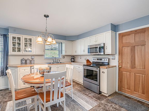 - Features: Eat-in Kitchen, Wood Cabinets, Solid Surface Counters