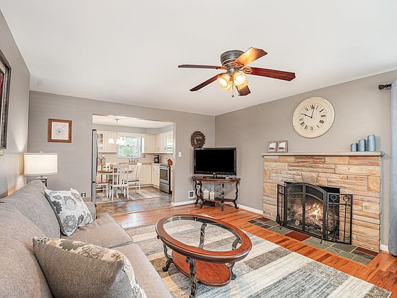 Discover this charming 3-bedroom home with a possible 4th in the basement, nestled on a quiet street surrounded by beautiful woods. Enjoy the serenity of nature with occasional deer sightings while still being close to everything you need. Inside, you'll find a newer kitchen, updated bathroom, and fresh flooring throughout. The cozy gas fireplace adds warmth and character, while the spacious front porch is perfect for relaxing. Recent upgrades include a newer HVAC, water heater, and gutter guards for added convenience. With great neighbors, ample storage, and a peaceful setting, this home offers the perfect blend of comfort and charm!