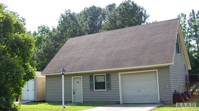 Unique home north of Elizabeth City. Large workshop/garage on first floor with living area above. One bedroom, one bath, living room and eat-m kitchen. Large lot with storage building. Also, adjacent lot (approx. 1 acre) is on market for $25,000 with electric connections and septic system that must be inspected to determine condition.