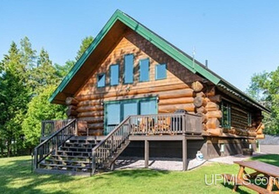LOG HOME ON LAKE MICHIGAN. This is a custom built Log Home on 150 ft of shoreline along Lake Michigan just 15 minutes from Escanaba! This beautiful home sits on just over an acre of land and the logs were handcrafted in the Upper Peninsula by Koski Log Homes from Ontonagon. Beautiful red and white pine logs. Features include in-floor radiant heat, stainless steel appliances, ceramic tile, Adler Cabinets, Triple-pane Pella windows, vaulted ceilings and much more! This is a 2 bedroom,2 bathroom home with an open floor plan for the kitchen and living room great for entertaining! In addition the full basement includes an egress window for a possible future bedroom as well as a possible 3rd bathroom that has already been plumbed. A newer barrel sauna is included in the sale. ALL Custom Log furnishings are included with the sale too! Move right in or start enjoying this as your year around get-away! Nice little sand beach area and the Kayaks are included too.