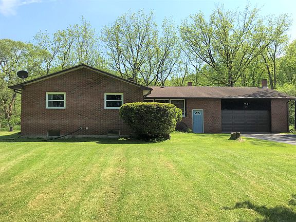 Nice private lot, surrounded by woods and open fields. Enjoy the abundance of wildlife in your own backyard while only minutes from town. Well-kept and maintained brick ranch with everything on main level including 2 car garage. 3 bedroom, 2 bath, new windows, overhead doors, newer kitchen and bamboo flooring throughout. Basement is partially finished with extra kitchen area (including stove, sink & refrigerator), family room with double sided brick fireplace. Living room also has brick fireplace and large bay windows for enjoying the scenic backyard. Blacktop driveway. New well put in 2018.