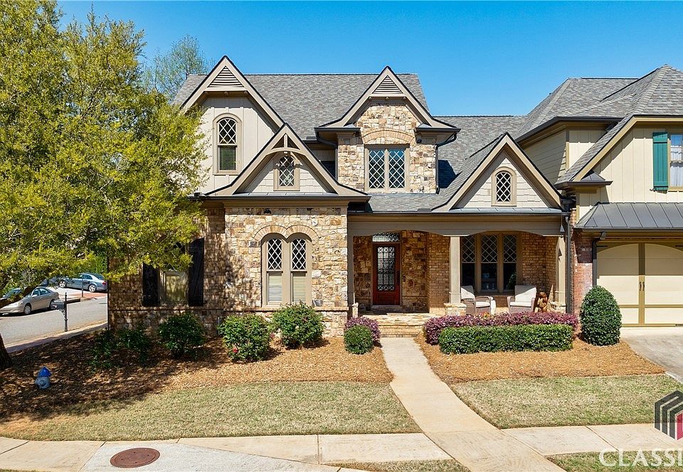 Discover luxury living in The Courtyard at Rowan Oak, a premier gated community in Oconee County’s heart. This highly sought-after neighborhood is located just 15 minutes from the University of Georgia and downtown Athens, with convenient access to Hwy 316 and zoned for the top-rated North Oconee High School. This luxuriously designed 4-bedroom, 3.5-bathroom home blends modern elegance with timeless craftsmanship. Exterior: Welcoming covered front porch and fenced backyard with a covered deck. Interior: Open floor plan featuring vaulted/coffered ceilings, custom cabinetry, and extensive trim and molding. Living Areas: Two-story great room with fireplace, formal dining room with butler’s pantry, and a two-story foyer with a wrought iron staircase. Kitchen: Granite countertops, stainless steel appliances, breakfast area, and ample storage. Owner’s Suite: Located on the main level, complete with two walk-in closets, double vanities, a jetted tub, and a separate tiled shower. Upper Level: Three spacious bedrooms, including one with a sitting area/office and built-in desk, plus two additional full baths. Every detail in this custom-built home has been meticulously curated to provide comfort and sophistication. The Courtyard at Rowan Oak offers a lifestyle of elegance and convenience with its exceptional amenities, including gated entry for added security, a resort-style swimming pool, tennis courts, and clubhouse, 18 acres of scenic walking trails and recreation areas, and hassle-free yard maintenance is included in the annual HOA fee. Experience the unmatched charm of The Courtyard at Rowan Oak, where elegant living meets exceptional convenience. Schedule your private showing today and fall in love with this extraordinary home.