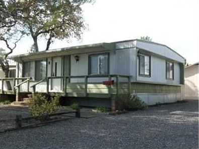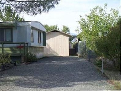 Clean manufactured home on large corner lot. Split floor plan, master bath / garden tub, laundry rm., central heat and air, fridge, washer and dryer, newer roof. Outside has two separate parking spaces, RV access, storage shed, 11x20 covered patio + easy care yard. NOT a park mobile! NO space rent! This home is on its own land. On a permanent foundation for bank financing.