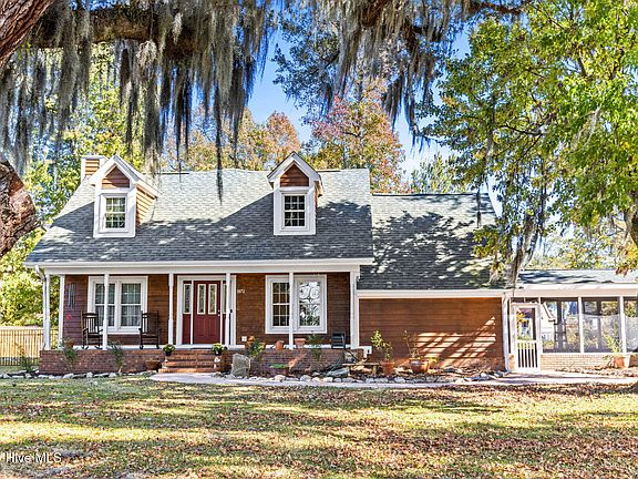 Welcome to this truly one-of-a-kind home in Leland! Located at 1072 River Rd, this stunning property sits on a full acre and offers 4 bedrooms, 3½ bathrooms, and over 3,000 sq. ft. of thoughtfully designed living space. Enjoy a sunroom, bonus room, and oversized garage, along with a new roof (2021) and an efficient geothermal system. Relax in the primary bedroom with its jet whirlpool tub and fireplace, while the living room also boasts a cozy fireplace for cooler evenings. The home also features a large driveway with two entrances for easy access, a fenced backyard with a shed, and a private well powering the geothermal system. Enjoy sitting on your covered front porch with a cup of coffee and admire the live oak in the front yard that is over 300 years old!
