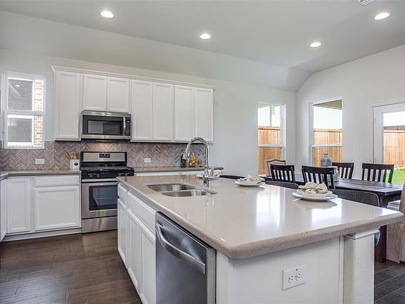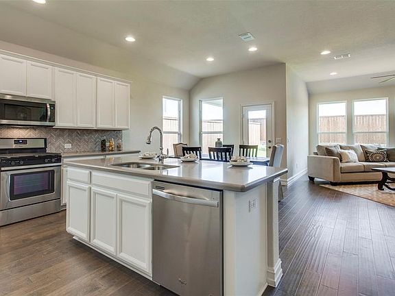 NEW CONSTRUCTION - Willow Ridge Estates in Fort Worth. Beautiful one story Arlington plan with brick and stone exterior - Elevation B. Available for April 2020 move-in. 4BR, 2BA + Bay Window + Smart Home Features + Fireplace + Study + Pendant Lighting + Granite Counters - 1,932 sq.ft. Open concept layout with stainless steel appliances, 42inch upper cabinetry in kitchen, granite counters & beautiful wall tile in Kitchen. Upgraded tile flooring throughout main living areas. Bay window at owner's suite and fireplace in gathering room.