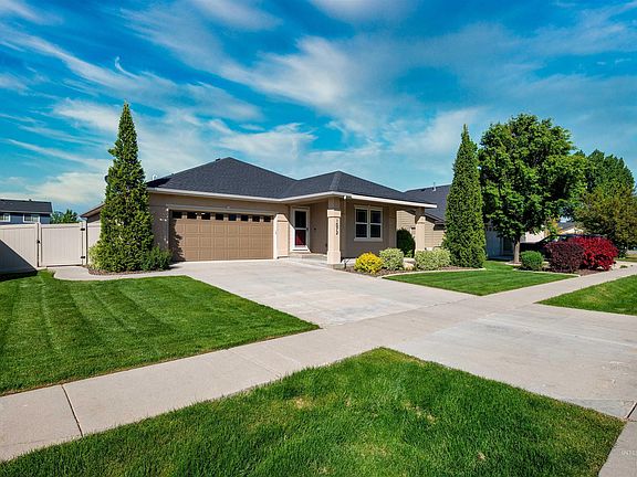 Pride of Ownership Shines in this Immaculately Maintained Meridian Home! Offering a thoughtfully designed split-bedroom layout with an open concept, home is perfect for both entertaining & everyday living. Vaulted ceilings & added solar tubes create a bright, welcoming atmosphere throughout. The kitchen features a breakfast bar, full tile backsplash, new sink, updated light fixtures & high-quality Bosch dishwasher. Ceiling fans have been installed in every room for year-round comfort. All of the carpet has been replaced with stylish, updated flooring & custom barn door enhances the primary suite’s walk-in closet. Additional cabinetry in the laundry room provides extra storage space. The exterior was freshly painted in 2024. The spacious covered patio—complete with ceiling fan and lighting—is ideal for relaxing or entertaining. The HVAC system has been regularly serviced & a new water heater has been installed. A shed is included for additional storage. Home backs up to a peaceful walking path.