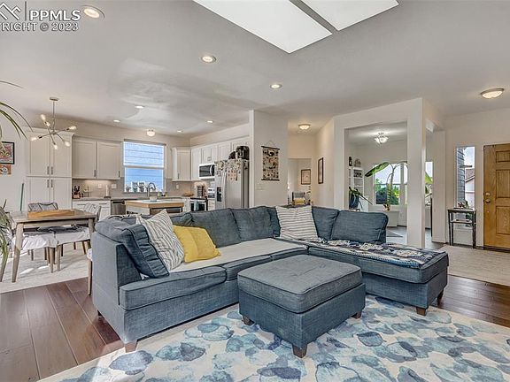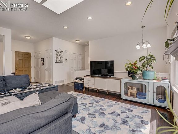 What's not to love about this 4 bedroom ranch? From the open concept main level with newly remodeled kitchen to the perfectly landscaped backyard with new composite deck, you will feel at home. Entire main level of the home has bamboo floors, large windows and skylights that allow in bright natural light, a cozy gas fireplace, and the floor plan is designed with perfect spaces that are useable and adaptable. The kitchen was remodeled in 2019 and includes quartz counters, soft close cabinets, and stainless steel appliances. Downstairs has a large rec room with two additional bedrooms and remodeled bathroom. The back yard is perfect for entertaining with the large deck, patio for grilling, grass space that is surrounded by flourishing perennial flowers and shrubs. Other great features include air conditioning, newer roof (2020), front & backyard irrigation system, and a newer furnace (2017) just to name a few. This home is conveniently located just minutes from Fort Carson's Gate 3, less than 10 minutes to The Broadmoor, numerous hiking trails, restaurants and shops.