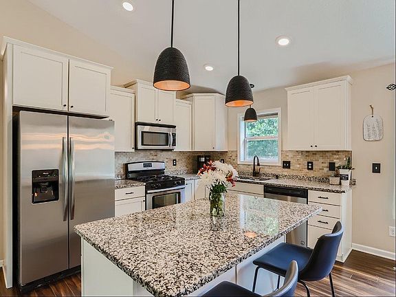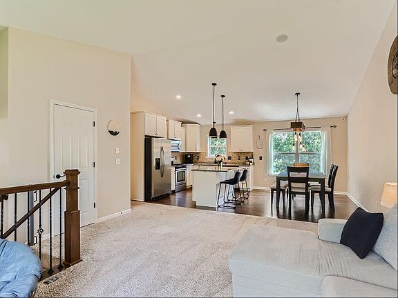 Stunning home with modern decor and private lot! Granite tops, white woodwork, and a large center island are featurs of the kitchen. Vaulted ceilings give the main level an open feel. Be sure to note the amount of sq ft finished and the backyard view. There are 3 br's on the upper level and a 4th on the lower level. The owner's suite features a private bath and a walk-in closet. The lower level is perfect for entertaining! The living room is huge and walks out to the patio. A bar area is a perfect serving area while guest are visiting. The fireplace is the focal point in this room. The heated 3 car garage is great for your biggest toys. Be sure to notice the fresh Epoxy floors. A front porch is a great place to hang out and greet neighbors. Parks are within walking distance and schools are nearby. Dont wait!