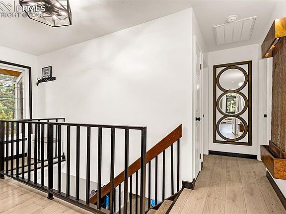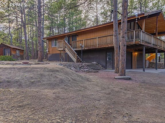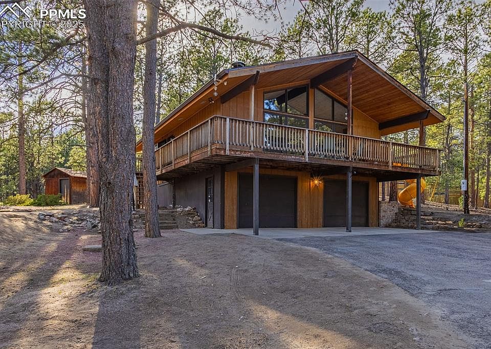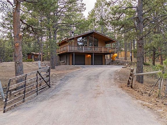Experience the perfect fusion of modern luxury and rustic charm in this beautifully updated 3-bedroom, 2.5-bath home in the heart of Black Forest, Colorado. Situated on 3.25 private acres, this 1,792 sq. ft. retreat features high-end craftsmanship, smart home upgrades, and thoughtful updates throughout. At the center of the home, the Aspen Kitchen-designed fridge wall integrates premium Gaggenau appliances, including an in-wall fridge, oven/microwave, and an espresso machine offering 12 beverage options. The Café WiFi-enabled stove and two-in-one dishwasher allow for remote control via an app, bringing convenience and efficiency to your fingertips. The kitchen boasts sleek and durable quartz countertops, along with a reverse osmosis water filtration system for pure, great-tasting water. Stay warm and cozy all year with three heating sources—electric, gas, and wood-burning—offering versatility and cost savings. Recent updates include new kitchen plumbing and electrical, a newer water heater, and fresh interior paint before move-in. A new gas line has been run from the street to the house, with a gas stub at the stove for an easy conversion to a gas cooktop. The outdoor space is where this property truly shines. The wraparound porch offers a peaceful retreat, where you can sip your morning coffee and take in the sunrise over the trees. For a touch of whimsy, a built-in slide off the porch adds fun for all ages. Offering the perfect balance of seclusion and convenience, this home provides privacy, stunning natural beauty, and easy access to schools, shopping, and hospitals. Whether you’re seeking a peaceful retreat or a forever home, this move-in-ready Black Forest gem is a rare find.