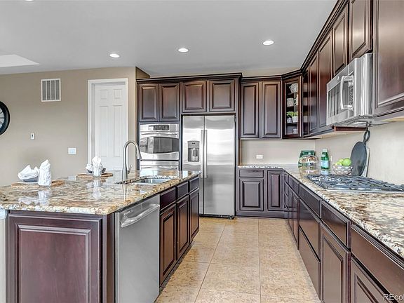 Welcome to your dream home in Parker, Co. This exquisite ranch-style residence boasts a durable concrete tile roof and a thoughtfully designed floor plan that seamlessly blends comfort, elegance, and functionality across 4,842 total square feet. Upon entering, you'll be welcomed by tile flooring that enhances the beauty of the main living areas, creating a timeless ambiance. The office is enclosed by glass French doors, making it an ideal space for remote work or a quiet study area. The heart of the home is the open kitchen, a chef’s dream equipped with granite countertops, a central island with additional seating, and top-of-the-line appliances, including a gas range and double ovens. The extensive cabinetry ensures a place for everything. Adjacent to the kitchen, a cozy eating space is perfect for family meals or enjoying your morning coffee. The inviting living room offers flexibility for decorating and is ideal for family gatherings or relaxing evenings. The main floor primary bedroom is a serene retreat, featuring a 5-piece bath with dual vanities, a glass door shower, a soaking tub, and a spacious walk-in closet. Additionally, two more bedrooms on the main floor share a full bathroom with dual vanities and a combination bathtub and shower, catering perfectly to family or guests. A sizeable laundry room with a washer, dryer, and utility sink adds convenience to daily chores. Step outside to a meticulously designed stamped concrete patio, ideal for grilling and enjoying Colorado’s beautiful weather. The home is also within walking distance to a nearby park, offering recreational opportunities right at your doorstep. The property features a spacious, unfinished basement providing a blank canvas for creative expansion or ample storage. **LENDER INCENTIVE! 1% TEMP RATE BUYDOWN FOR 1ST YEAR**REFI WITHIN 1ST 5 YEARS OF PURCHASE $1000 LENDER CREDIT&LENDER FEES WAIVED!** CALL ROBIN @ SLS LENDING FOR MORE INFO. 303-378-5973/EMAIL: Robin.McGlone@SelectLendingServices.com