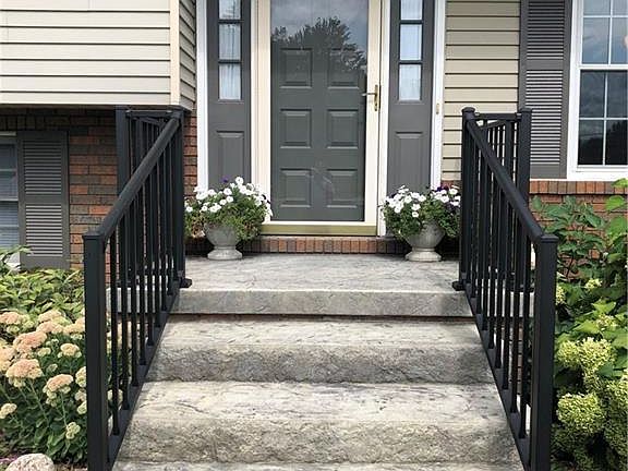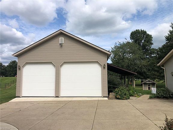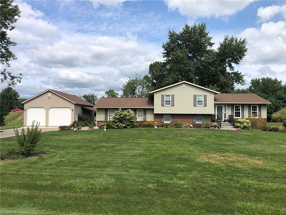 Wonderful opportunity to own this one-owner, well kept 4-level split home with a large outbuilding/garage on nearly an acre in an outstanding Lake Twp/Hartville location. Youll enjoy peaceful backyard views off of your maintenance-free Timbertech deck or your covered porch. The 6-7 car garage/outbuilding (built in 2005) with a 9x10 and 10x10 door is heated, has hot & cold water and a utility sink - endless possibilities for storage or a workshop. Youre welcomed inside up the new stamped concrete front steps to the tiled foyer on the main floor where youll also find the large and updated eat-in kitchen with new quartz countertops (2020), white cabinets and a large dining room/living room with newer laminate floor. Upstairs youll find 3 nice-sized bedrooms with large closets, newer carpet (2018/2020) and an updated full bath (2020) with quartz vanity top, new tub, tile surround and LVT flooring. Downstairs youll find the cozy family room with custom built-in bookshelves/entertainment center and lots of natural light. Youll also find the laundry room/utility room/office space as well as another freshly painted full bath with a shower. In addition, there is an unfinished basement area with a fruit cellar and loads of additional storage. Other features include: many vinyl replacement windows, Andersen patio door, newer light fixtures, new well pump (2020), newer exterior doors in attached garage (2012), 8x8 insulated playhouse and more. Call for your private showing today!