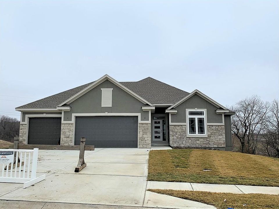 Ernst Brothers "Coventry" Reverse 1.5 Story. Less than 90 Days from Completion! Situated on a Highly Sought After lot Backing to Green Space! Wide Open Floorplan on Main Level with Natural Light & Tall Ceilings! Hardwoods in Main Living Area. Kitchen Features Custom Cabinetry, Gas Range, Walk in Pantry & large island. Main Level Master Suite w/ large walk-in closet, master bath has direct access to laundry. Nice covered deck to enjoy the view. Main floor rounded out with 2nd bedroom. Lower level includes 2 additional bedrooms with walk-in closets, family room with bar and plenty of storage. Taxes, sq ft and room sizes estimated" Estimated completion date December 2022.
