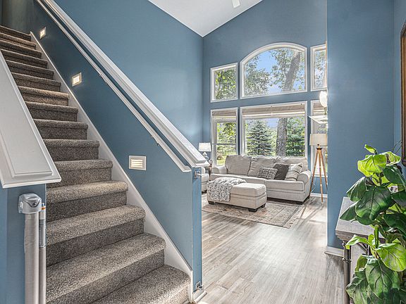 Spectacular 5 bedroom home, nestled on nearly 1 acre, with a private, fenced-in back yard, located in Rockford! The main floor features an open living room, with cathedral ceilings and large windows, letting in abundant light. Main-level, primary ensuite with bay window, walk-in closet, jetted tub, shower, and dual vanity. Spacious kitchen and dining area. Home office, Main-floor laundry, 1/2 bath, and mudroom. Upstairs you will find 4 more spacious bedrooms and a full bath. The daylight lower level features a wet bar, full bath, and expansive rec. room. There is also plenty of storage, closet space, and a flex room as well. The 3 stall garage offers a workshop area. Enjoy the natural setting from the back deck or hot tub. New Furnace in 2021. Sellers instruct listing agent to hold all offers until Tuesday, 7/30, @ 12PM.