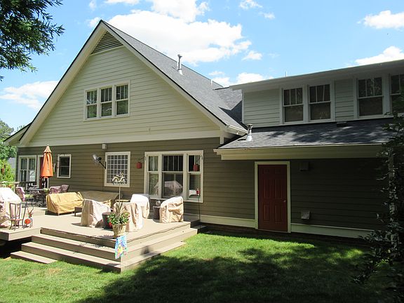 First floor master, 3 bedrooms and office/bedroom, attached workshop, brick fireplace. large deck, wood view from back yard.