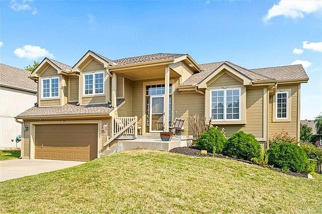This beautiful, tri-level home awaits your fall and holiday decor! Invite and entertain guests in multiple gathering areas. Spacious rooms, living/dining room combo, kitchen with great storage & beautiful cabinets. Master bathroom has double vanity, walk-in closet, jetted tub, & separate shower. Laundry room located on the bedroom level! Downstairs 2nd family room has a fireplace, half bathroom & walkout. Finished walkout basement is perfect for additional storage or rec area! Cul-de-sac lot with Liberty schools and Kansas City address.
