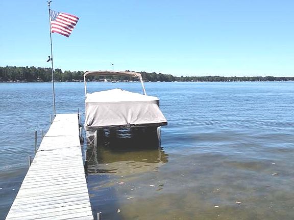 Great location on all sports 8 Point Lake in Clare County. 2 Bedroom cottage offering great southern view, living room with fireplace, deck 24 x 21 for outdoor entertaining, being sold mostly furnished including pontoon boat with 40 hsp Mercury, has bunk house, boat house, include land across road 50' x 450+/-', come to one of Clare County's largest lakes, #6780