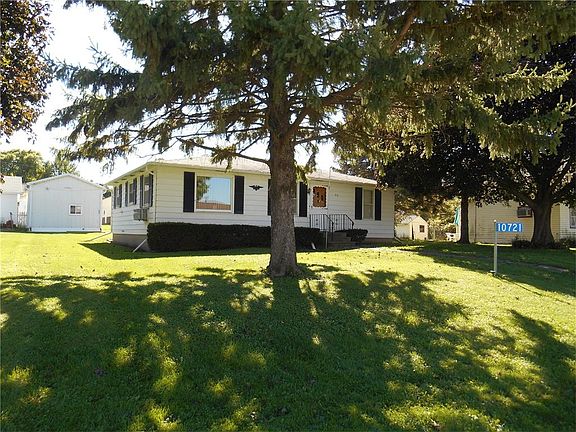 Charming small town living. 2 bedrooms, large Living room, Kitchen / Dining room combo. First floor laundry which includes beautiful walk in shower! Mature trees and perennials. Covered Patio. Take a look; also low taxes.