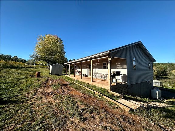 Incredible 74 - acre property with endless possibilities! This unique estate features a new 40 x 60 barn equipped with 8 horse stalls, each with private access doors, a tack room and a chicken coop. There is a dedicated nursery / birthing room for goats and or chicks, a shed/barn designated for goats, and a free stall area for cows. The Property includes large pastures, a duck pond sealed with Benzonite, and 20 acres currently rented to a local farmer. There's also a fenced dog house, ideal for breeding or hunting dogs. in addition to the barn the property includes a charming cottage shed with a loft, perfect for use as a playhouse, craft studio, or workspace. The house itself is only 3 years old and designed for energy efficiency. The partially finished basement offers great potential as an in-law apartment or guest suite, featuring a bedroom, bathroom with laundry, workshop, and a meat room equipped with cooler walls and a sink - ideal for home butchering. This agricultural property may qualify for a 20-year tax break (buyer to confirm transferability) Don't miss out on this exceptional opportunity to own a versatile property with so much to offer!