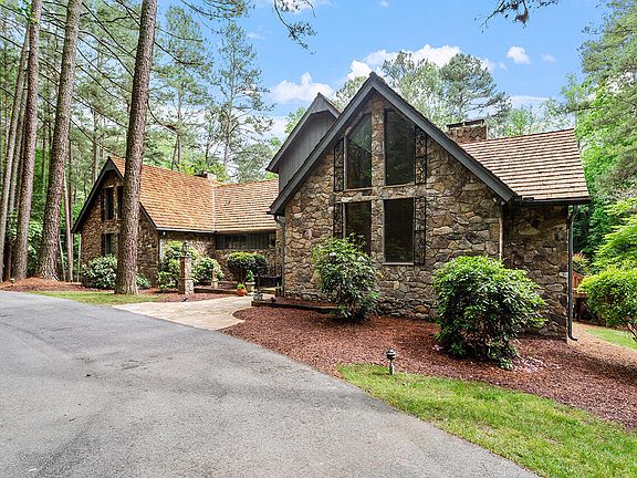10721 Trego Trail is a secluded retreat in North Raleigh, perfect for the discerning buyer seeking a one-of-a kind home in a magical setting. This meticulously maintained property offers complete privacy with 4.2 acres to explore. Outdoor enthusiasts will enjoy the property's private tennis/pickleball court and a 51-foot-long inground pool. Custom-built by renowned Raleigh builder, Tom Gipson, the rustic cedar and stone contemporary home features four bedrooms including a main level primary suite, an upscale urban primary bath with calcutta marble finishes, soaring 17-ft cathedral ceilings in the living room and family room, 4 grand stone fireplaces, and an open layout between the kitchen and family room. Finished basement includes an office, large den, kitchenette, full bath, and game room( this great space has potential for an inlaw suite)Three-seasons room opens to the outdoor living areas. There are 3 unfinished rooms in the BSMT: large workshop, mech.room, and storage room. An 80-foot deck and covered flagstone patio below wrap around the back of the house. Energy-efficient geothermal HVAC system-its annual check in April found all is working well! This oasis is just minutes away from shopping, dining, healthcare, groceries and high-demand schools, both public and private. In the Trego subdivision homes seamlessly blend with the environment, allowing the topography and natural landscape to take center stage.Homes are set back from the road, hidden behind protective tree buffers, providing immense privacy for each homeowner.