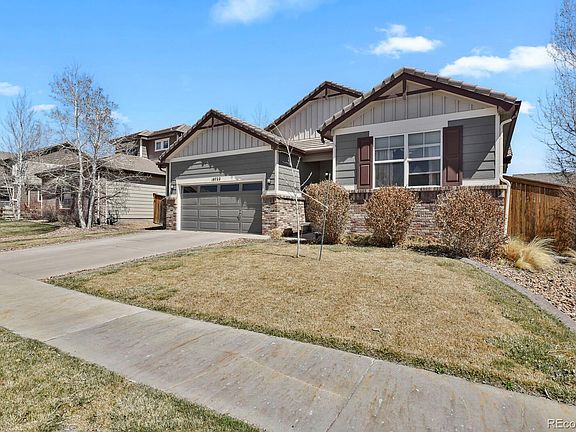 OPEN HOUSE SATURDAY APRIL 22ND FROM 12-3 P.M. Immaculate Ranch home with a full walk out basement! Backs to greenbelt, no neighbors behind you! Open layout with many windows for natural light, tall ceilings, main floor living. Master bedroom with 5 piece master bath and walk in closet: the floors, tile shower, soaking tub, double sink. 2 spare bedrooms with full bathroom. Large kitchen overlooking great room with plenty of cabinet space, pull out drawers, center island, stainless appliances, eating space, wine rack, tile floors. Great room and the dining area have hardwood flooring, large south facing windows, gas fireplace, sliding door to back deck. Newer carpet in bedrooms. Main floor laundry room with cabinets for extra storage. Large unfinished walk out basement, covered patio area under deck. Fully landscaped yard with sprinklers in the front and back yard. 2 car oversized garage, central air-conditioning, concrete tile roof. This neighborhood does have a community pool that is part of the HOA. This home is located in a great community with walking paths, rec centers close by, golf course close by, 15 minutes to DIA, 20-25 minutes to downtown, close to E-470 toll road, and new development coming in. This area also offers charter schools and public schools. If you need a showing during the week before 5:30 p.m. - please text listing agent.