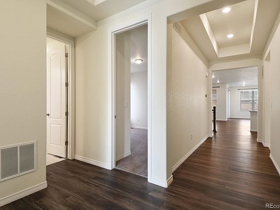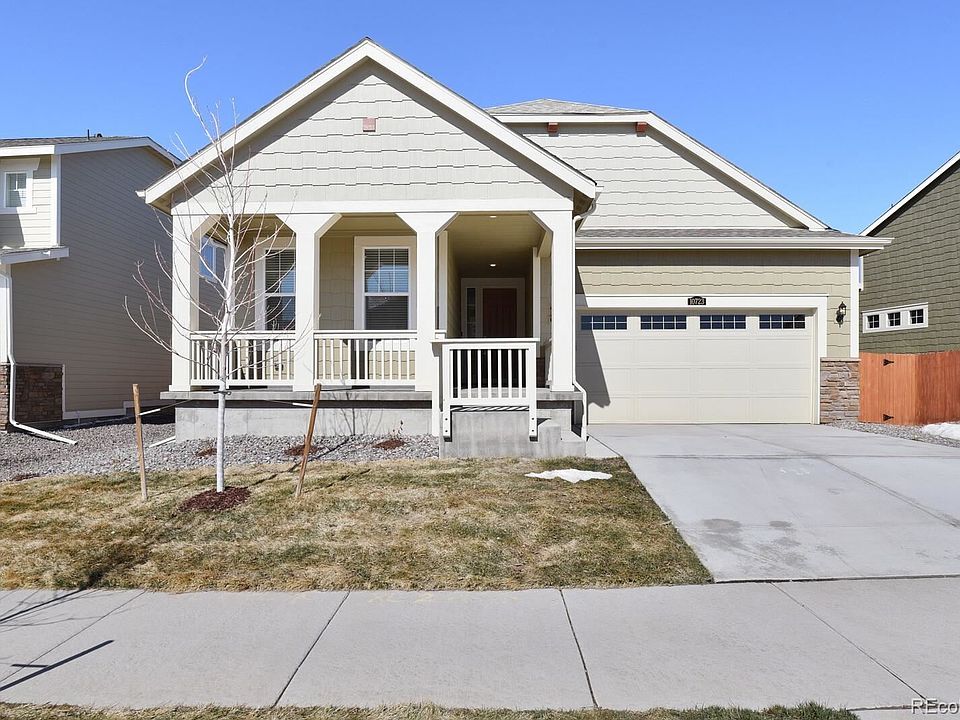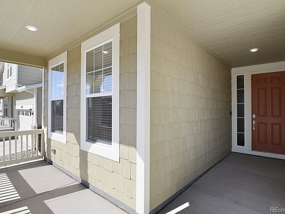 This like-new home - lightly lived in for about one year - is the popular ranch style floorplan by Lennar. Located on a quiet street in Sierra Ridge, this home is truly move-in ready with neutral flooring/paint, super clean, and available for quick possession! Fantastic one-level living centered around the well-designed Great Room with gas fireplace and large dining space next to sliding glass door to the covered deck. Gorgeous kitchen featuring white cabinetry, subway tile backsplash, gigantic island, slab granite counters, pantry, trash/recycle pull-out cabinet, stainless steel appliances. Beautiful master suite with four windows, tray ceiling, oversized walk-in closet and large bath with white cabinetry topped with granite and double sinks, soaking tub, glass enclosed shower, toilet closet and linen closet. The home offers two more bedrooms and a full bath. Convenient main level laundry room with storage cabinet, closet, and newer washer/dryer included in the sale. Mud room with bench and storage located off the two car attached garage. The unfinished basement with two egress windows offers an additional 1,836 sq ft for future expansion with bath plumbing stubbed into corner space - makes great space for two guest bedrooms, movie or gaming room, storage, etc - and check out the high ceilings! This home has awesome modern details: tall interior doors, recessed lights, open stair railing to the basement, Ring video doorbell, phone app option to control lights/thermostat/front door lock. Fenced backyard with covered deck (attached roller sunshades are included). Solar energy system is leased (transferred via SunStreet Solar to the Buyer at Closing).