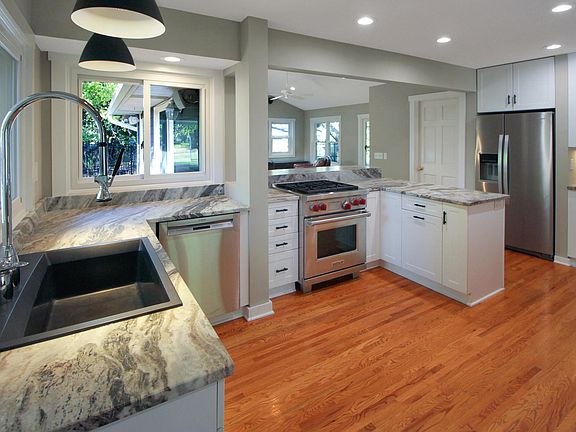 Sprawling one level on a huge cul de sac lot in high desire area of West Bloomington. Hardwood carries through main floor from the oversized formal dining room with a corner fireplace back to the vaulted great room with natural views on 3 sides. Open granite and stainless kitchen in the center of the home has a coffee bar area and is open across a waterfall countertop peninsula to the great room. Outdoor living space includes a massive entertaining deck, a hot tub deck, greenhouse and a large, flat, private, fully fenced yard. 3 bedrooms on main with a large updated, custom tiled bath. LL owners ensuite with a walk-in closet has adjacent family room with a full wall brick fireplace creates a great in-law or guest suite. Awesome media area is perfectly situated in a no window area in the LL away from bedrooms. Additional heated shop and storage area with second laundry. Main floor laundry and lower level laundry. High end updates all the way through this unique home!