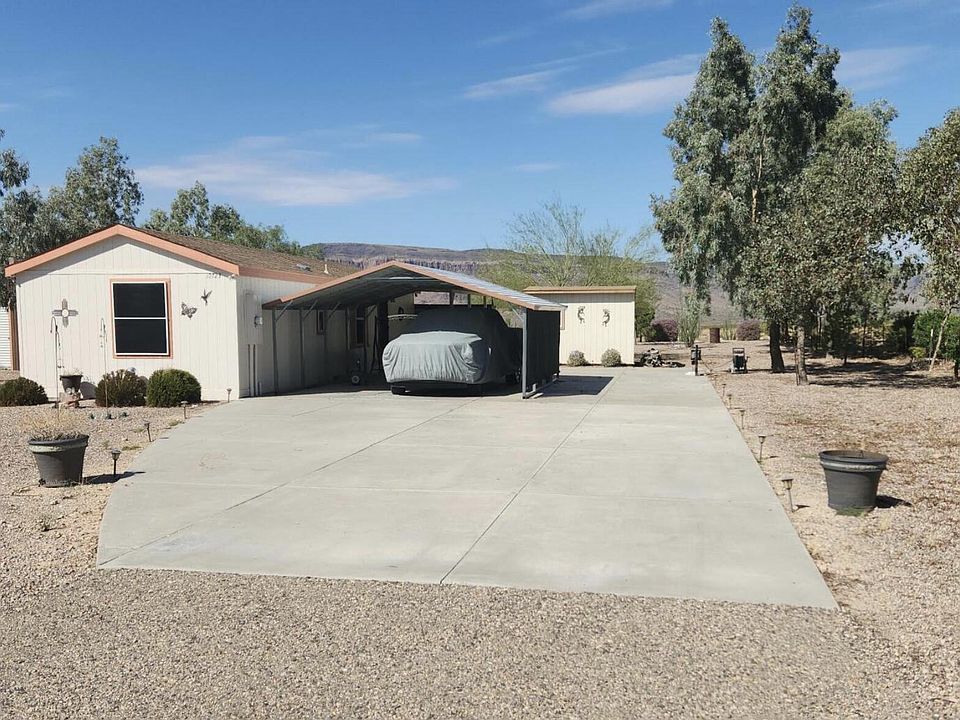 Charming one-bedroom, one-bath manufactured home with an inviting open living room, kitchen, and dining area. The property includes a large detached garage perfect for all your storage needs. Enjoy the serene outdoors under large, mature shade trees from your patio. RV enthusiasts will appreciate the RV parking space, complete with hook-ups and 50-amp electrical, as well as covered parking for your side-by-side, boat, or other toys. With gorgeous views in every direction, you're just steps away from the open desert and have easy access to Interstate 40. Additional features include a handy storage shed and a partially fenced yard for added privacy. Paradise Trails Rd. is 20 minutes from downtown Kingman and about 35 minutes to Lake Havasu, providing conveniences for shopping, dining, entertainment, the lake, river, and Hualapai Mountains, while still living the quiet Yucca lifestyle.
