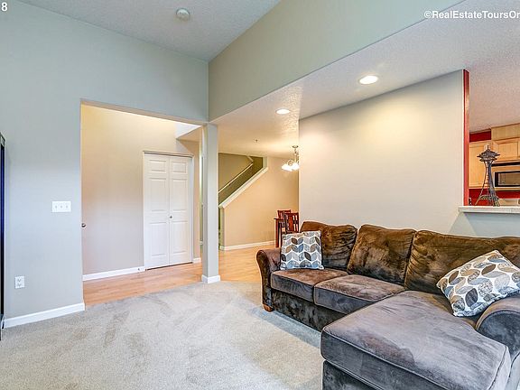 Fabulous end-unit townhome style condo in the heart of Tigard! Rare attached 2 car garage! Great access to grocery stores and shopping. Great room floorplan with high ceilings, wonderful natural light, gas fireplace. Kitchen with hardwood floors, gas appliances. Master Suite with double sinks & walk-in closet. Peaceful patio. AC! All the amenities of a detached home with everything taken care of! Open Sun 1-3