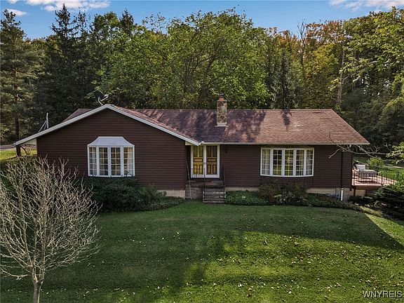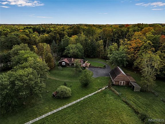 Discover the Beauty & Allure of this Single Owner, Remarkable Ranch w/ Walkout Basement in Alden Schools on 26 Acres w/ Horse Barn. An Idyllic Lifestyle awaits with Privacy from the road & no view of any neighbors. This unique home was designed w/ versatility & longevity in mind, set upon the most serene setting. Spacious 15x21 primary bedroom w/ bay window framing the lush pasture view. Primary bedroom currently has 2 walk-in closets of which one can be converted to a future en-suite bath, plans available! Great Room w/ Authentic Stone gas fireplace & another picturesque view out! Kitchen is country sized w/ much desired walk in pantry. Walkout basement offers endless possibilities for customization, whether for up to 900sq ft living space or convenient no step in-law suite. Circle driveway is stately & convenient. 5 stall horse barn, 3 w/ their own Dutch door to the outside, washing station, direct connection to pasture, & full 2nd story. Deck access from great room, kitchen & the outdoors w/ remote controlled awning. 874ft of road frontage allows for future subdivide option of another building lot. Natural Gas Well. Showings Begin immediately. OPEN HOUSE CANCELLED- SOLD