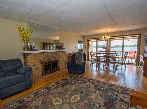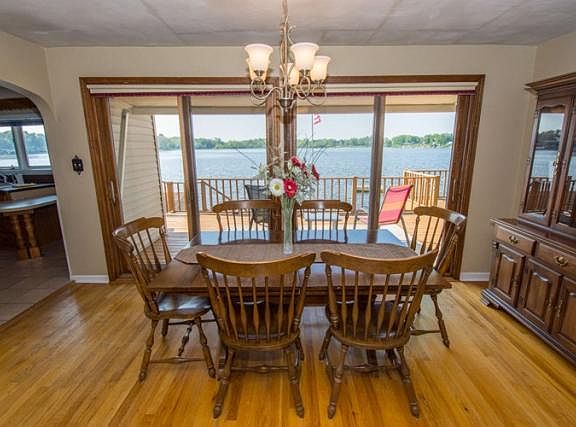 Step through the front door and beautiful panoramic river views are yours throughout the home. Flowing floor plan, beautiful hardwood floors, tile floor in bath and laundry area, and gas log fireplace to enjoy the cooler weather. Good closet and storage space. Enjoy outdoor entertaining with main level and riverside decks. There's about 12 1/2 miles to the east and 3 miles to the Mishawaka dam for boating. Mature landscaping and gardens to enjoy. Newer 60' deep/5" well installed in 2010, roof replaced in 2005, furnace and A/C in 2001. Located nearby County Line Rd, Mishawaka, Elkhart, shopping and schools.