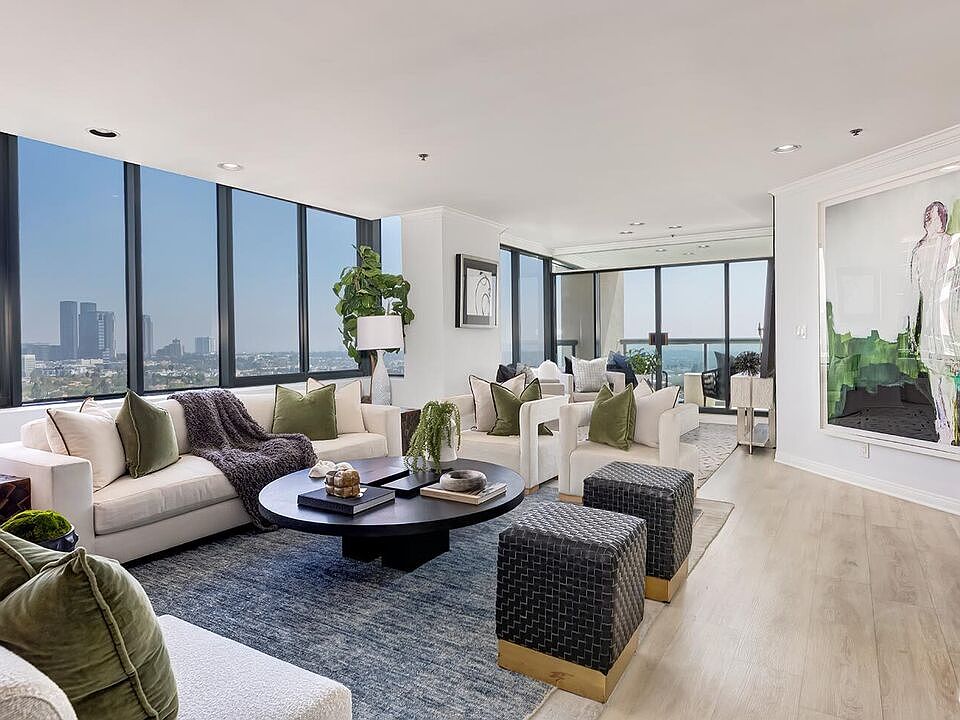 This exquisite, sophisticated tower condominium is a true pinnacle of luxury high rise living, ideally situated along the prestigious Wilshire Corridor with unparalleled access to Beverly Hills, Century City, Westwood, and the vibrant arts, culture, dining, and entertainment of the Westside. A stunning formal marble entry leads to a grand open living room with expansive windows and doors opening to an outdoor balcony that boasts breathtaking city-to-ocean views. The elegant dining area features a custom wet bar, while the chef's granite kitchen with breakfast area is perfect for culinary enthusiasts. Three luxurious bedroom suites, custom blinds, and ample storage closets complete the space. Gorgeous marble and wood flooring, high ceilings, built-ins, and moldings enhance the sophisticated atmosphere. The southern-facing balcony is ideal for indoor/outdoor entertaining, offering both privacy and panoramic views. This full-service building provides 24-hour security, doorman, valet parking, a pool, spa, a state-of-the-art gym, and a banquet room. The gorgeous lobby features several areas perfect for entertaining guests. This home offers the pinnacle of upscale California living in one of the most coveted locations in Los Angeles.
