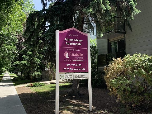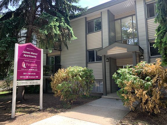 AboutLocated just south of Whyte Avenue, Jamen Manor boasts a large number of amenities close by including bus routes. Close to the University of Alberta and the U of A Hospital, and yet a short drive to the downtown core, Jamen Manor is a great place for students and professionals. Take advantage of the many River Valley trails near the building, adventure is calling! Call us to view your new apartment home. Let us help you find the perfect fit in Jamen Manor.* Limited Time Offer, Subject to Change, Exclusions Apply. Community Amenities- Outdoor parking- On-site staff- Laundry facilities- Public transit- Shopping nearby- Parks nearby- Schools nearby- Secure entry- App-controlled laundry machinesSuite Amenities- Fridge- Stove- Balconies- Hardwood floors- Individual thermostatsUtilities Included- Heat- Water