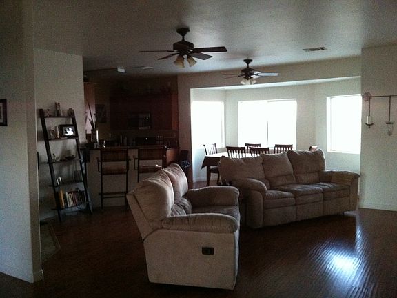 Custom 2007 built,1671 sq,ft,4 bedrooms and 4 bath home with New Paint and New Carpet.Featuring a Spit Floor Plan,Elegant kitchen with granite and stainless steel appliances, breakfast bar,wood laminate flooring,view of rear yard and mountains, Huge living area with high ceilings, two tone paint and new carpet, spacious bedrooms and master suite complete with walk in closet,granite in both baths with tile flooring, ceiling fans throughout the home,large laundry room with cabinetry and a over sized finished garage.The lot is 13,068 sq.ft with a huge covered rear patio with a view of the desert mountains!
