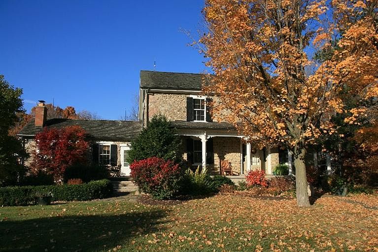 Priced reduced! One of seven historic cobblestone houses built in Washtenaw County before the Civil War, this home has been meticulously updated and restored to maintain the original character while providing modern conveniences. The farm-style kitchen features built-in antique shelving, tiger maple counters and beamed ceiling. 1st-floor master suite has new marble & granite bath with spa tub and large shower. 3 additional bedrooms and 2 baths plus laundry on the second floor, with a bedroom + sitting area on the third floor. Exposed stone in carriage house wing; wide-plank floors throughout the home. Geothermal heat for low utility bills. One room cottage with bath and kitchenette. Outbuildings include 3000 square foot barn, studio with bath, wood shop w/ garage, hen house and milk house. On a quiet country road, beautifully landscaped yard with lush gardens, native wildflower prairie and a fenced wooded area. 20 minutes to downtown Ann Arbor with Reddeman Farms around the corner.